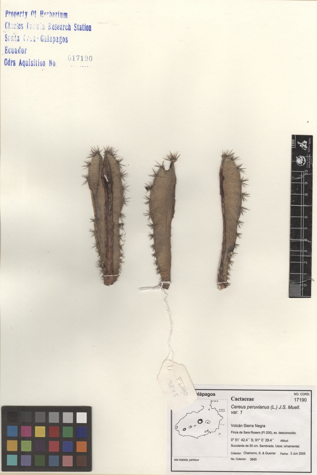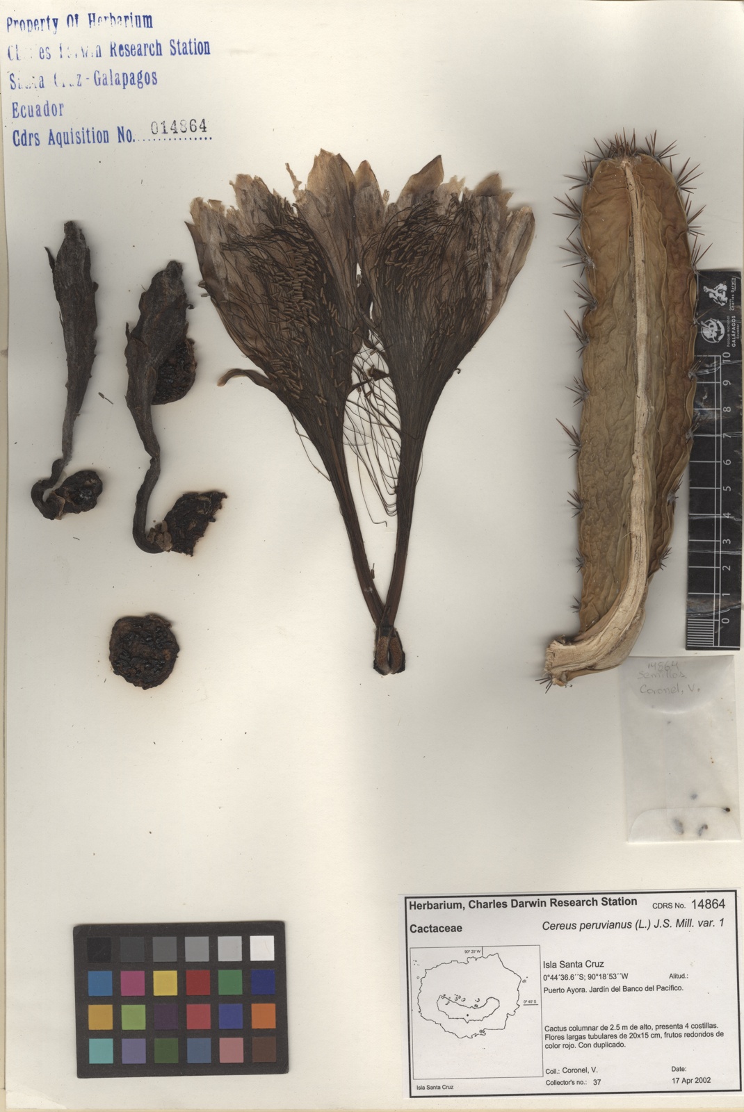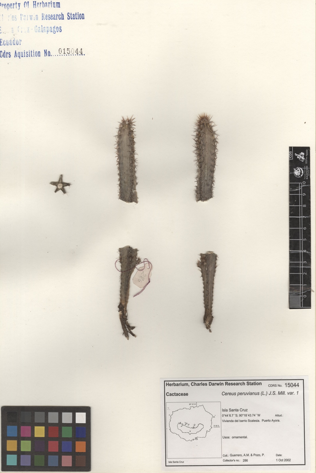 "Galapagos Species Database, Cereus peruvianus var. 1", dataZone. Charles Darwin Foundation, https://datazone.darwinfoundation.org/es/checklist/?species=235. Accessed 15 December 2025.